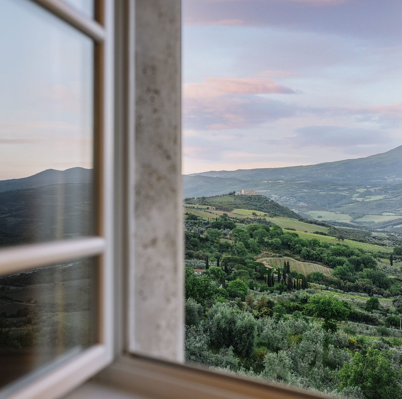 While you are in the heart of a medieval village, your private oasis awaits just steps away. Our infinity pool in the olive grove offers an “insane” panoramic view that stretches across the Val d’Orcia.