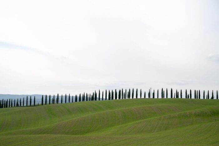 Few landscapes in the world evoke a sense of peace and beauty like the rolling hills of Val d’Orcia. Yet there is one element more than any other that shapes the visual and symbolic identity of this land: the cypress tree. Tall, slender, silent guardians of fields, vineyards, and country paths, they are vertical icons rising from a horizontal landscape. Here, we take you on a journey to discover their aesthetic, symbolic, and historical role in the area surrounding Serendipity.