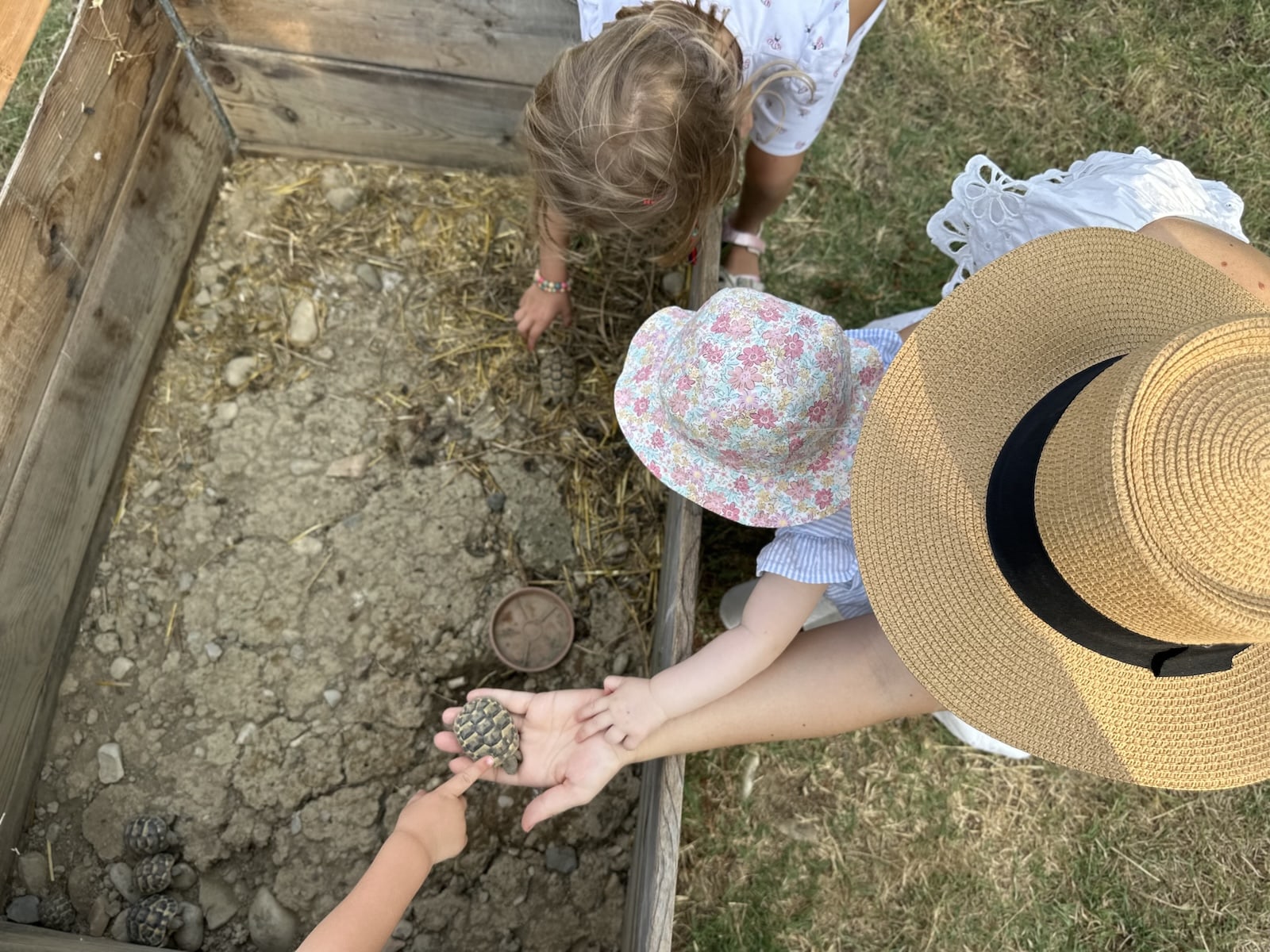 Touch, taste, pick vegetables, collect eggs, spy on the bees, pet the donkeys, have goats tickle your palms while feeding them, enjoy the sheep fight for your attention.